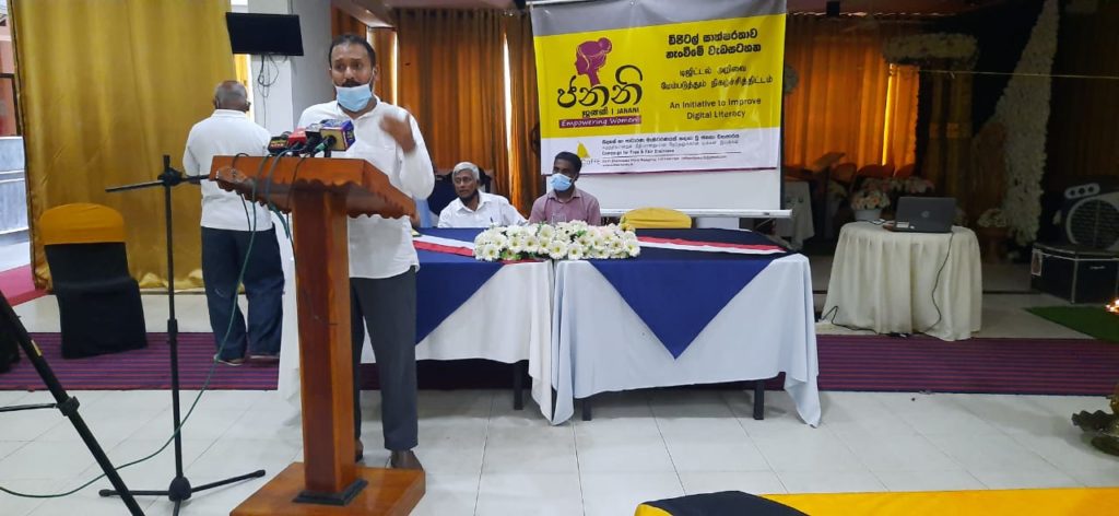 The participants were educated on the importance of digital literacy as well on holding media briefings and facing questions from the media. Well known elections monitor, Mr. Manjula Gajanayake led the proceedings, while former DCLG Mr. Dharmasiri Nanayakkara also addressed the gathering.CaFFE Executive Director, Mr. Ahmed Manas Makeen, spoke of the importance of digital literacy.