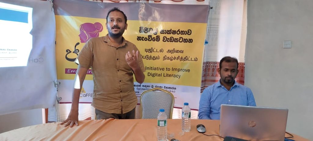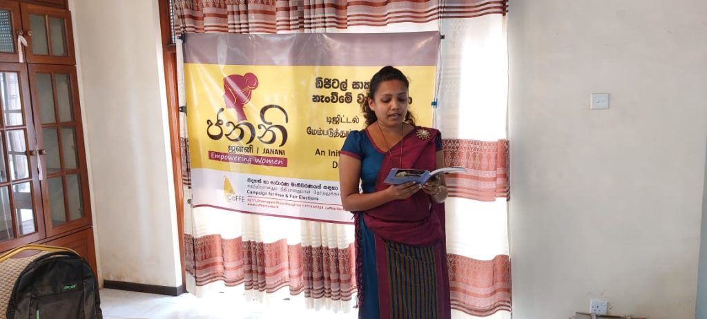 බිම් මට්ටමේ දේශපාලනයේ නිරත කාන්තාවන්ගේ ඩිජිටල් සාක්ෂරතාවය නැංවීමේ අරමුණින් කැෆේ සංවිධානය මෙහෙ වන “ජනනි” වැඩසටහන් මාලාවේ දෙවන අදියරේ කෑගල්ල දිස්ත්‍රික් වැඩසටහන අද පෙරවරුවේ කෑගල්ලේ දී පැවැත්විණ.