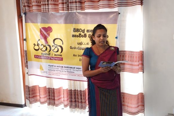 බිම් මට්ටමේ දේශපාලනයේ නිරත කාන්තාවන්ගේ ඩිජිටල් සාක්ෂරතාවය නැංවීමේ අරමුණින් කැෆේ සංවිධානය මෙහෙ වන “ජනනි” වැඩසටහන් මාලාවේ දෙවන අදියරේ බදුල්ල දිස්ත්‍රික් වැඩසටහන අද පෙරවරුවේ බදුල්ලේ දී…